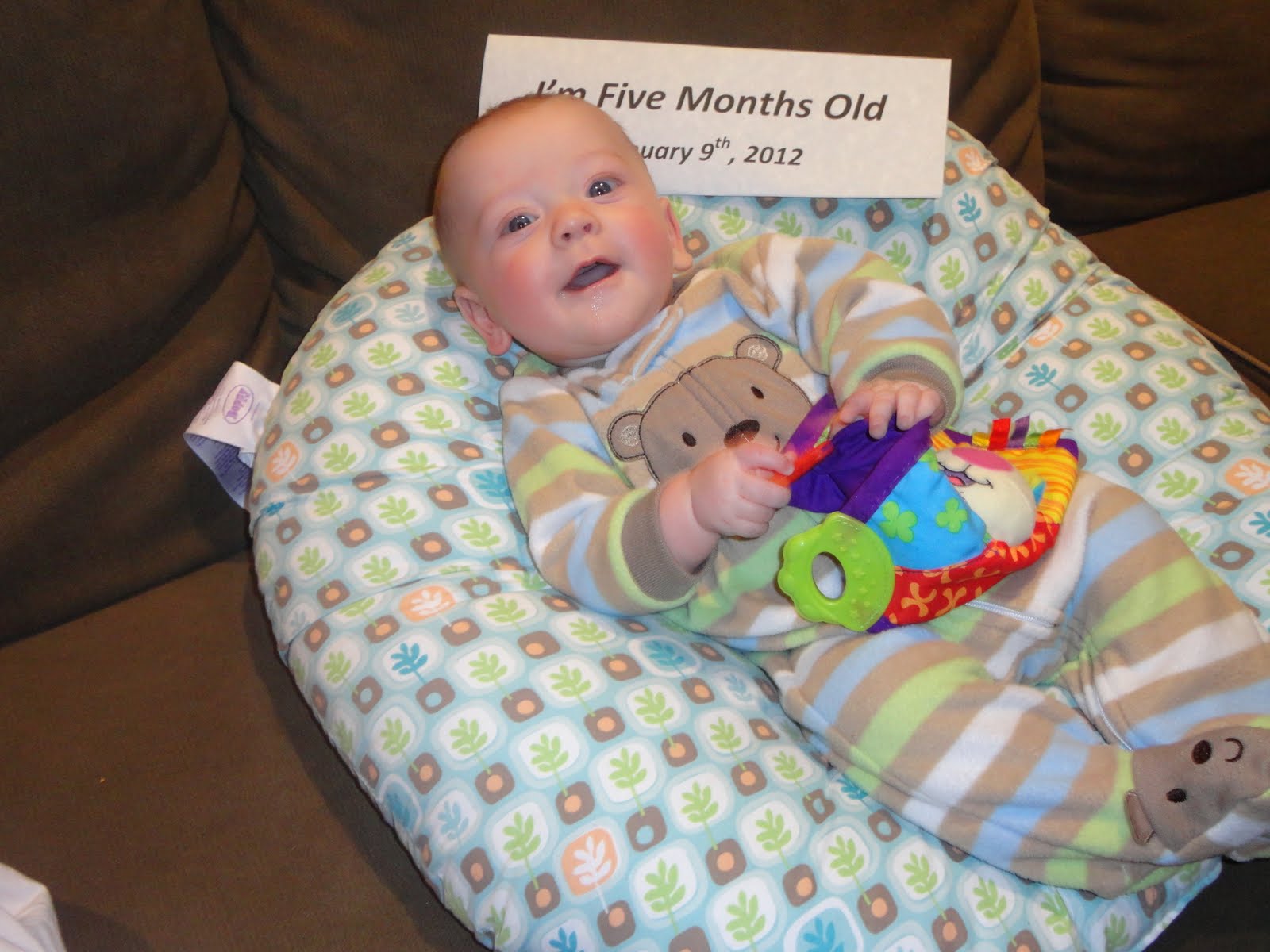 Henry turned 5 months old today! Where does the time go? He smiles like crazy (of course I couldn't catch one with the camera), loves his toys and "talks" to us all the time. He's a great baby and a true blessing!